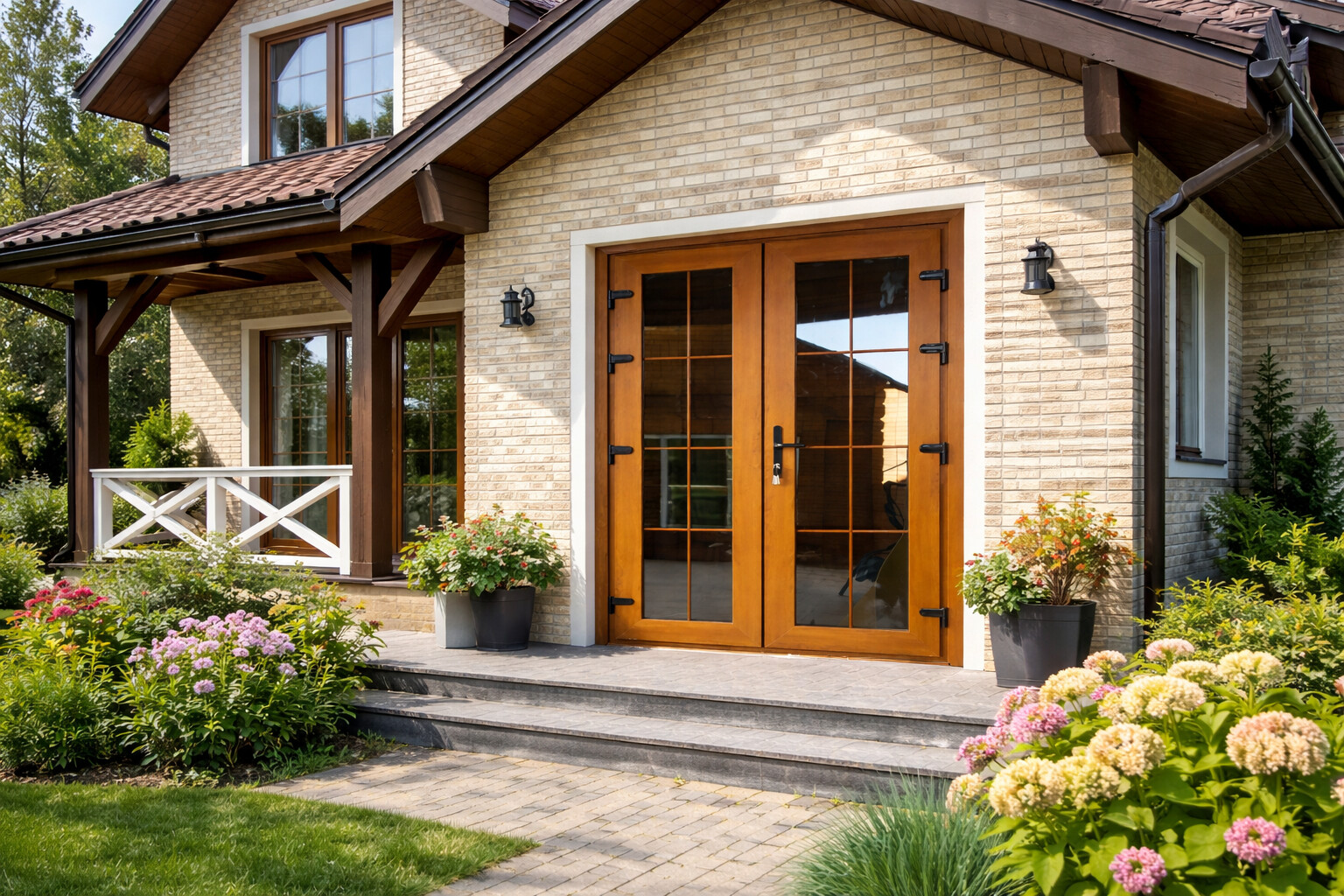 Классическое исполнение распашных панорамных окон всегда в моде.