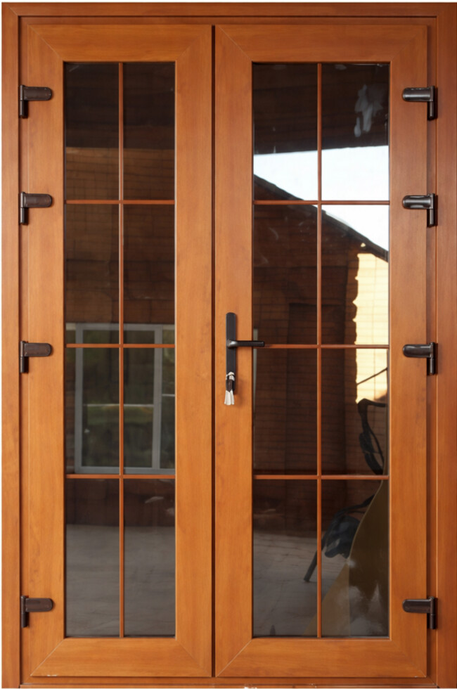 Двустворчатая ПВХ дверь с остеклением. Широкий проход, современный стиль и отличная теплоизоляция.